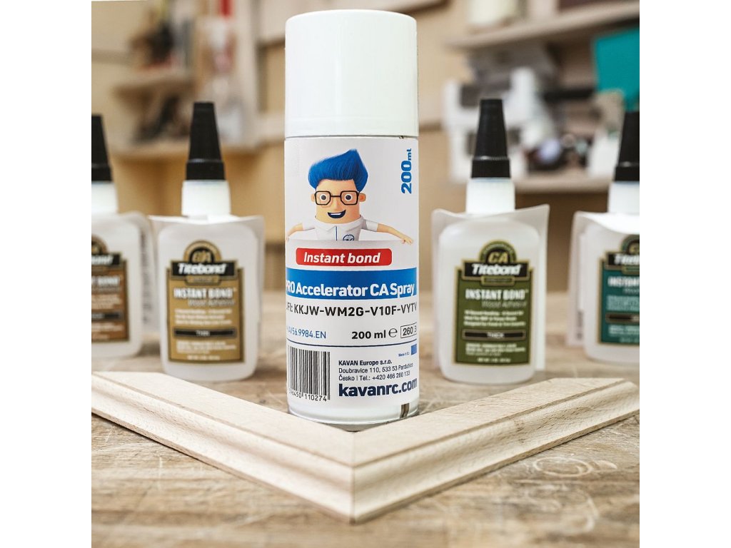 Aktivátor CA pre rýchloschnúce kyanoakrylátové (CA) lepidlá v aerosólovom balení. Slúži k urýchleniu vytvrdzovania rýchloschnúcich lepidiel Titebond Instant a iných v podmienkach nepriaznivých pre ich prirodzené vytvrdzovanie: v suchom prostredí, v chlade, pri lepení neaktívnych materiálov alebo pri aplikácii hrubej vrstvy lepidla. Produkt nesmie byť používaný pri lepení materiálov, ktoré nie sú odolné voči organickým rozpúšťadlám (napr. penový polystyrén).