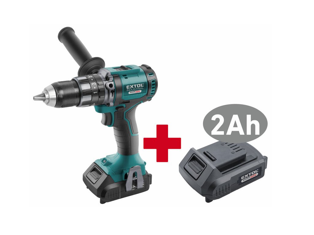 Vŕtačka s príklepom Share20V, 1x 2Ah, 80Nm, bezuhlíkový motor, kufor, EXTOL INDUSTRIAL + DARČEK 1x 2Ah 8791802X