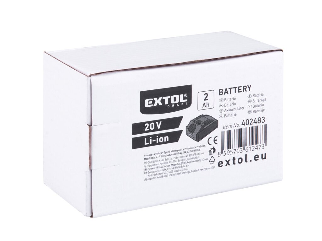 EXTOL 20V Akumulátor 2Ah Li-ion s indikátorom stavu nabitia 402483 pre náradie 40245X