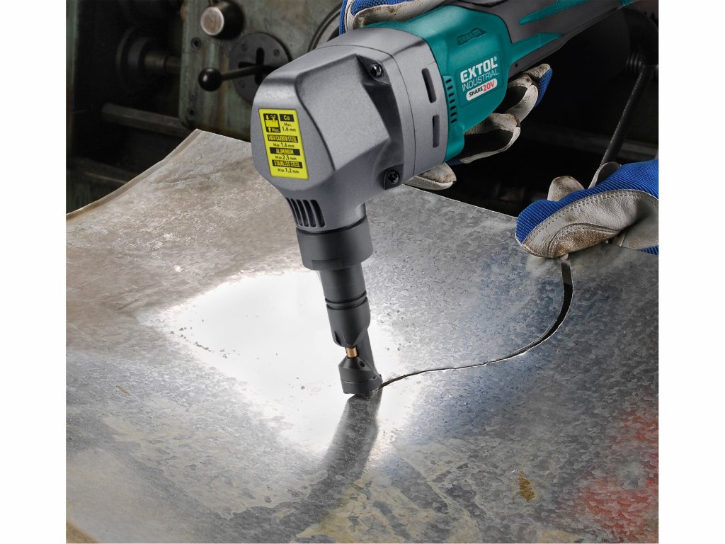 Nočnice na plech vystrihovacie Share20V, 1x 2Ah + nabíjačka, max. 2,5mm, bezuhlíkový motor, EXTOL INDUSTRIAL 8791830