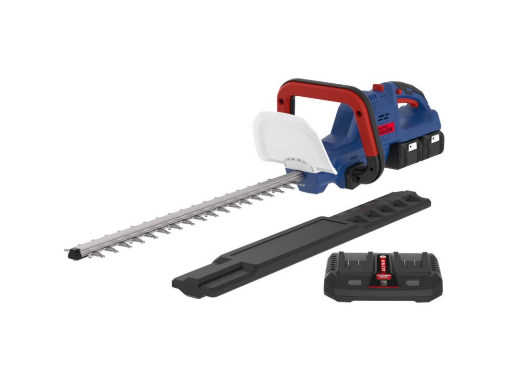 Výkonné akumulátorové nožnice na živý plot zo série akumulátorového systému 18V E3 vhodné na použitie okolo domu a v záhrade. Dvojručný bezpečnostný spínač, protibežné laserom rezané nože s diamantovým výbrusom, rýchle zastavenie nožov, päťnásobne otočná rukoväť (90°, 45°, 0°, 45°, 90°). Kovová prevodovka, hliníkový kryt nožov, ochrana pred úderom s držiakom pre montáž na stenu, ochrana rúk, rukoväť Softgrip, ochranný kryt pre bezpečné uskladnenie. Vrátane 2 ks akumulátorov 3,0 Ah a dvojitej rýchlonabíjačky 3,0 A.