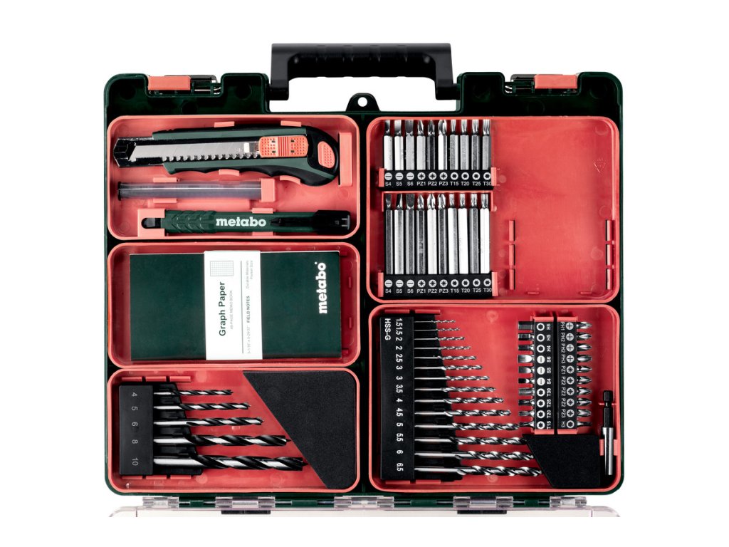 - Mobilný servis: plastový kufor s príslušenstvom pre vŕtanie, skrutkovanie a omnoho viac