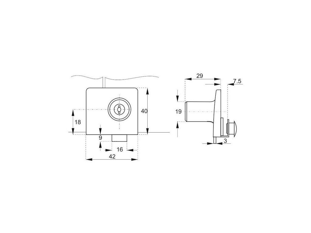 ALU SQUARE Zámok na dvojsklo hliník 2439