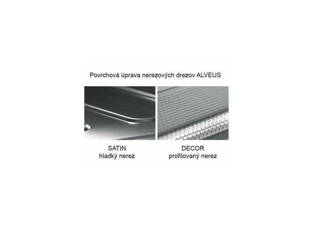 Nerezové drezy Alveus sú dostupné v niekoľkých typoch povrchových materiálov (Hladký nerez a Dekor). Hlavnými vlasnosťami a prednosťami nerezu CrNi 18/10 v rozsahu 0,5mm do 1mm sú: