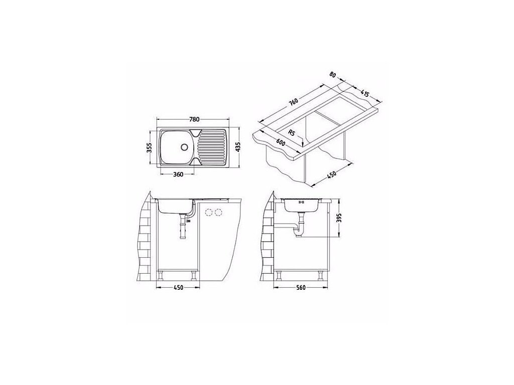 Rozmery drezu: 780 x 435 mm