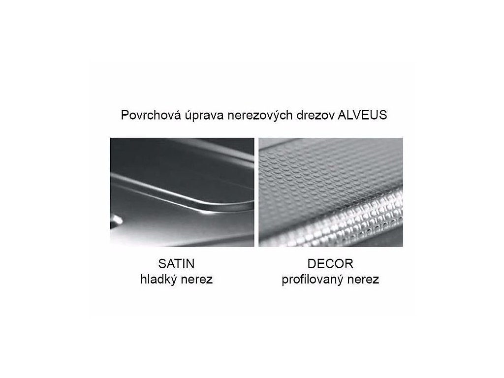 Alveus Praktik 100 je dostupný v dvoch typoch povrchovej úpravy materiálu - hladký nerez Satin a profilovaný nerez Dekor.