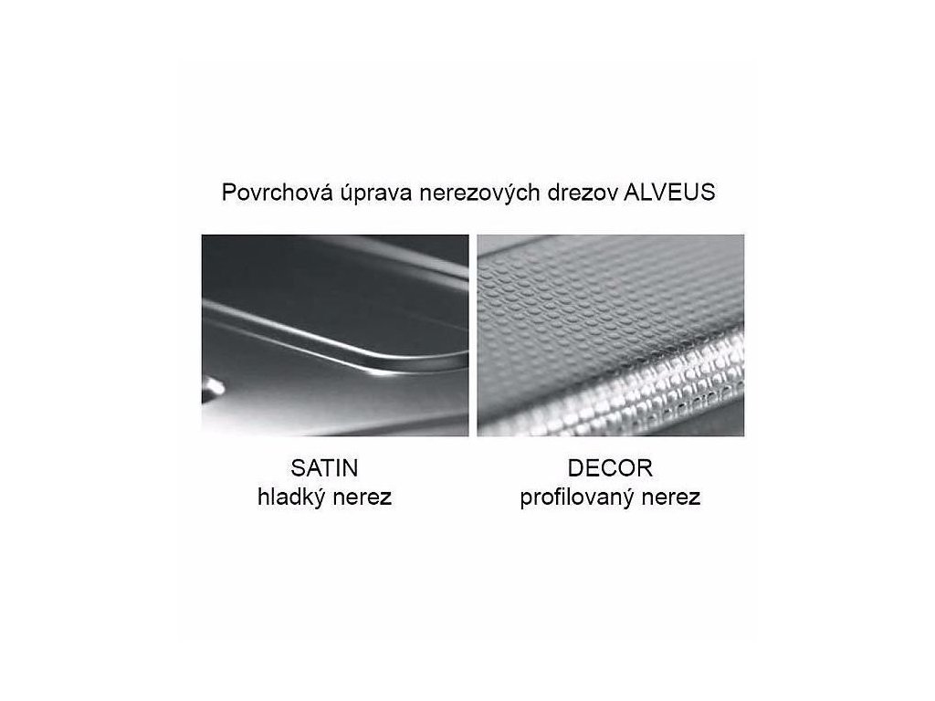 Nerezové drezy Alveus sú dostupné v dvoch typoch povrchovej úpravy materiálu - hladký nerez Satin a profilovaný nerez Dekor.