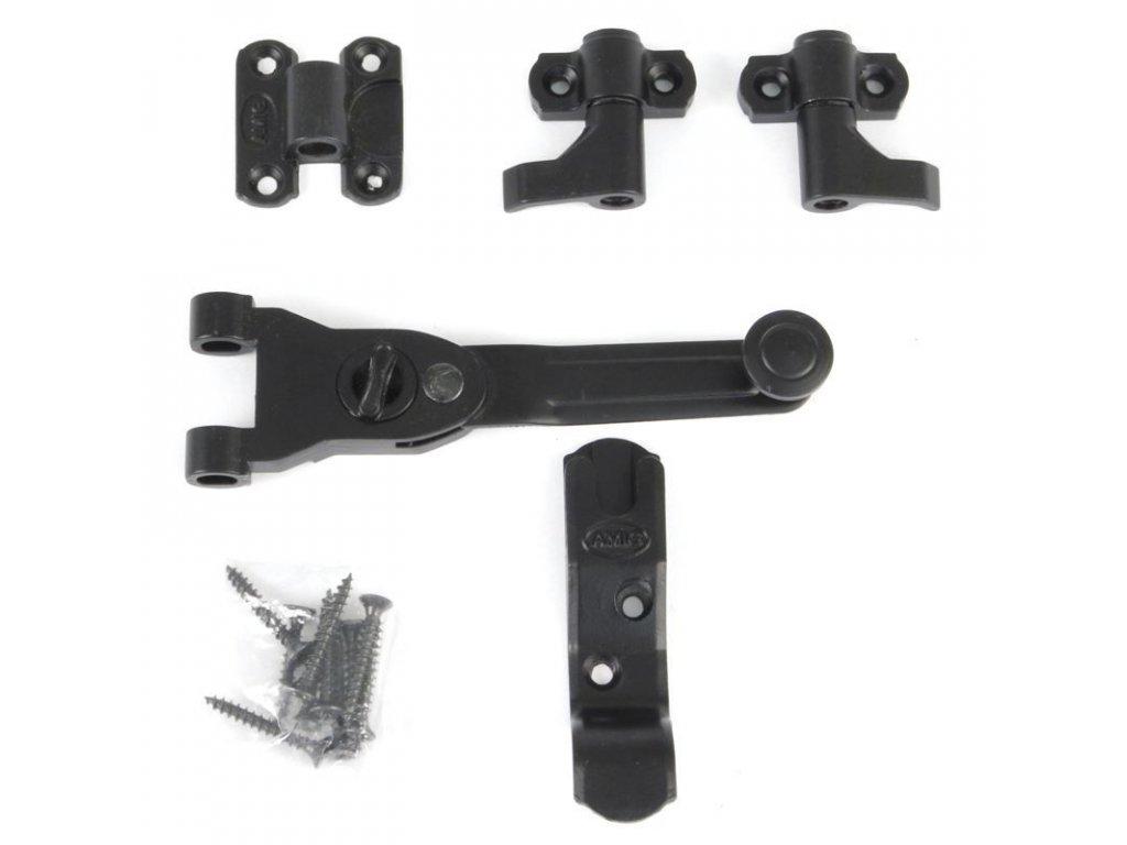 Zloženie: 1 kľučka, 1 zámok kľučky, 1 pravý hák, 1 ľavý hák a 10 pozinkovaných skrutiek.