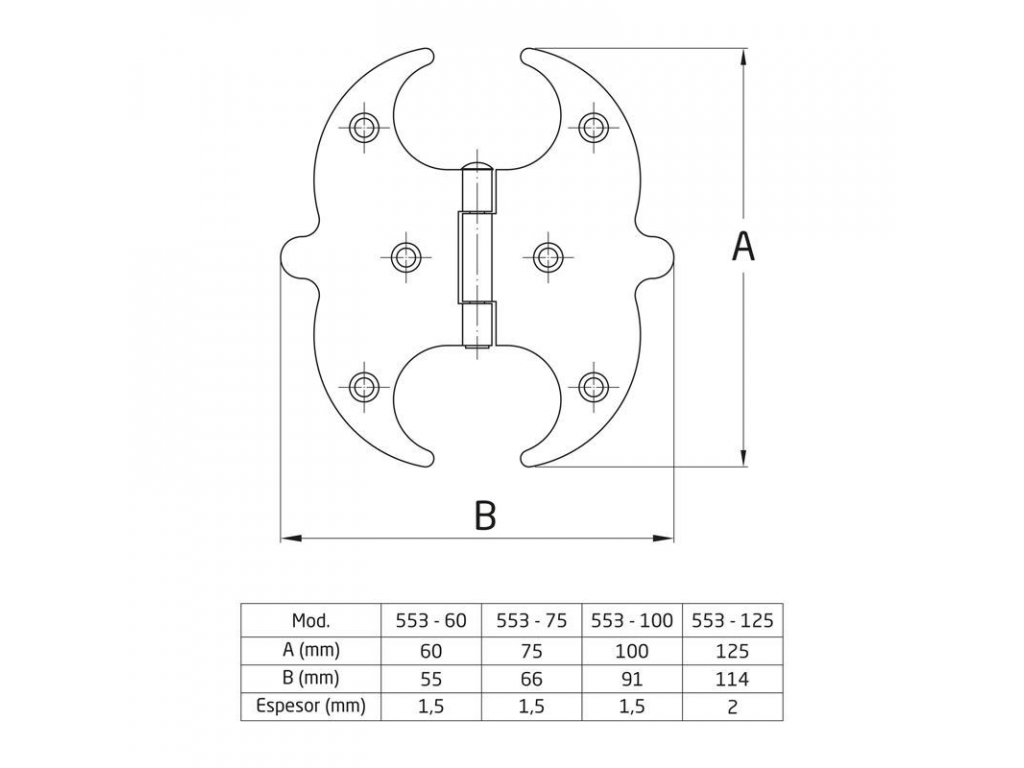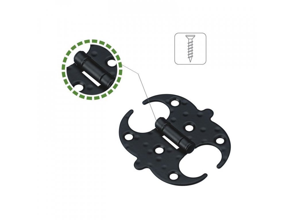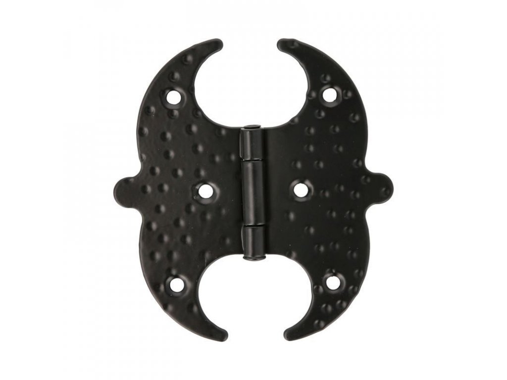 Bodkovaný oceľový motýľový záves v štýle kovania pre hladké dvere. S tepaným dnom, veľmi dekoratívne, ideálne pre dvere a brány v rustikálnom štýle. Obsahuje skrutky na umiestnenie.