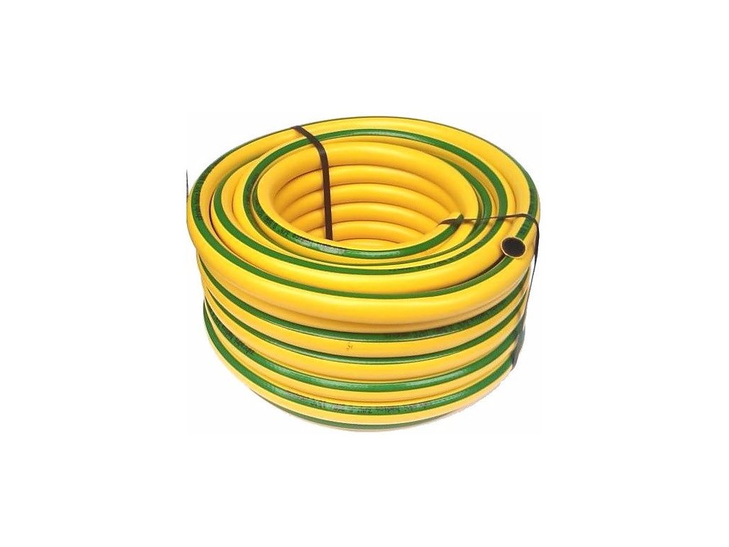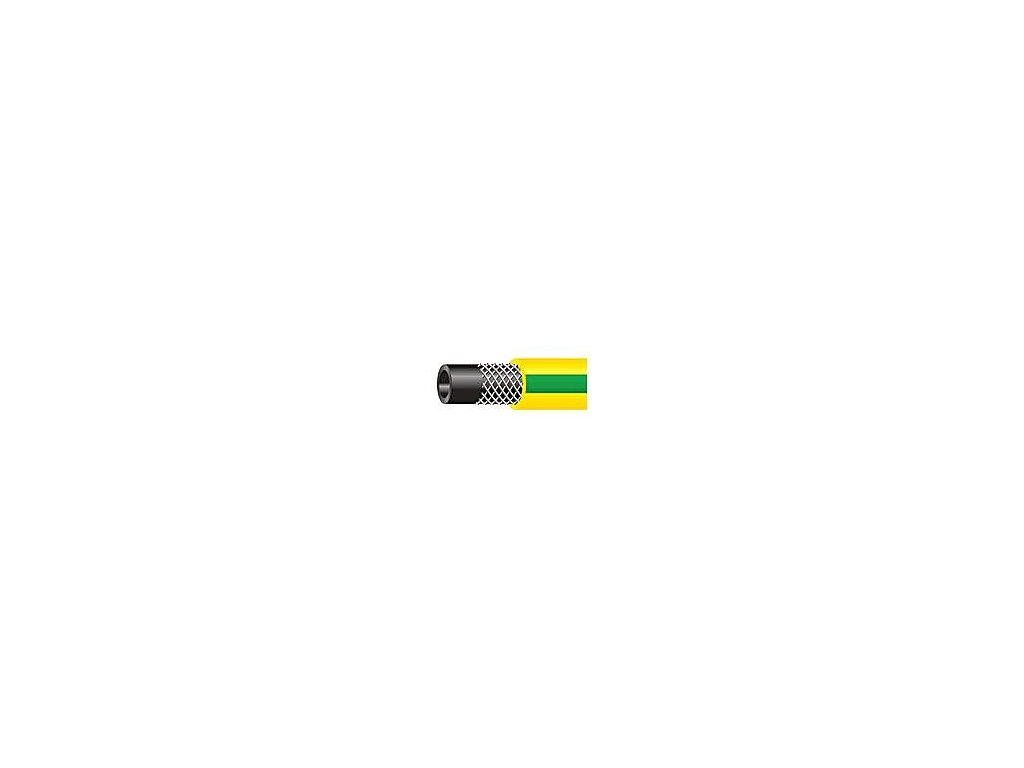 3/4 cólová PVC hadica s čiernou vnútornou vrstvou a vonkajším plášťom vo farebnej kombinácii žltej so zeleným pozdĺžnym pruhom. Vystužená vysokopevnostným PES vláknom. Svojou konštrukciou je určená pre všeobecné použitie. Vzhľadom k vyššej hrúbke steny má výborné mechanické vlastnosti - odolná proti deformácii.