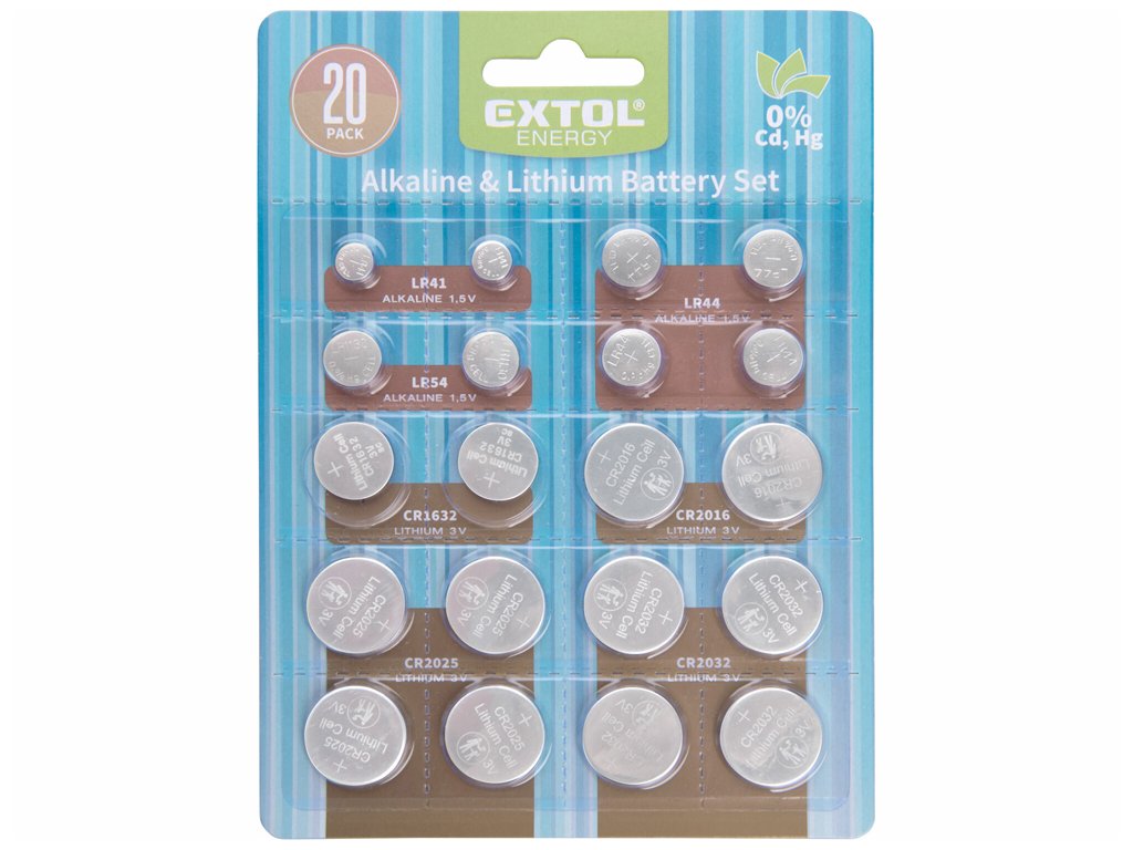 EXTOL Gombíkové lítiové batérie, sada 20ks LR41, LR44, LR54, CR1632, CR2016, CR2025, CR2032, 42057