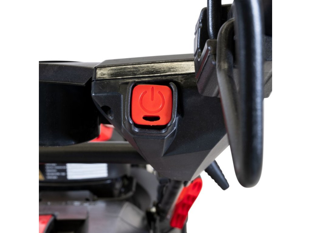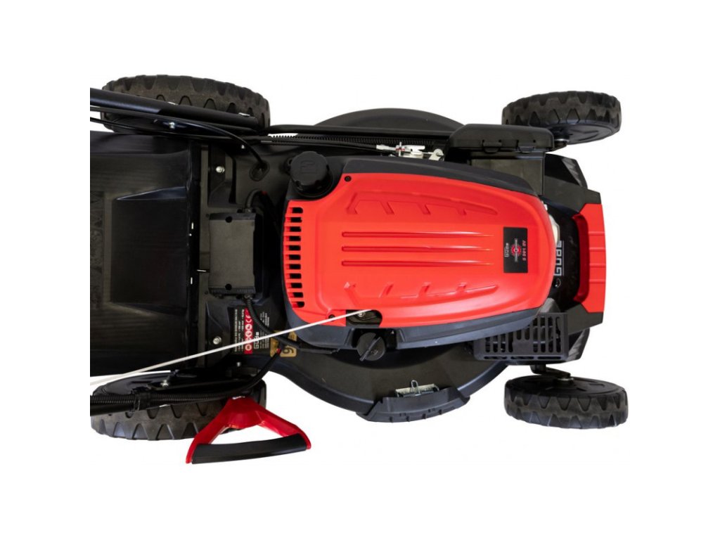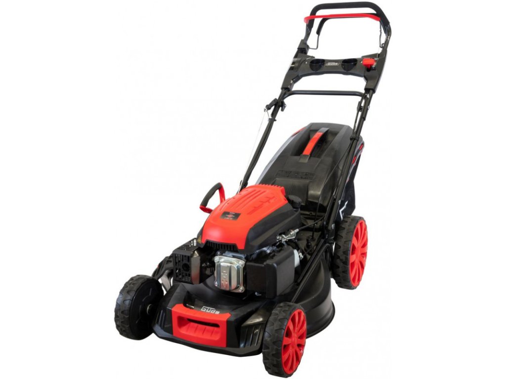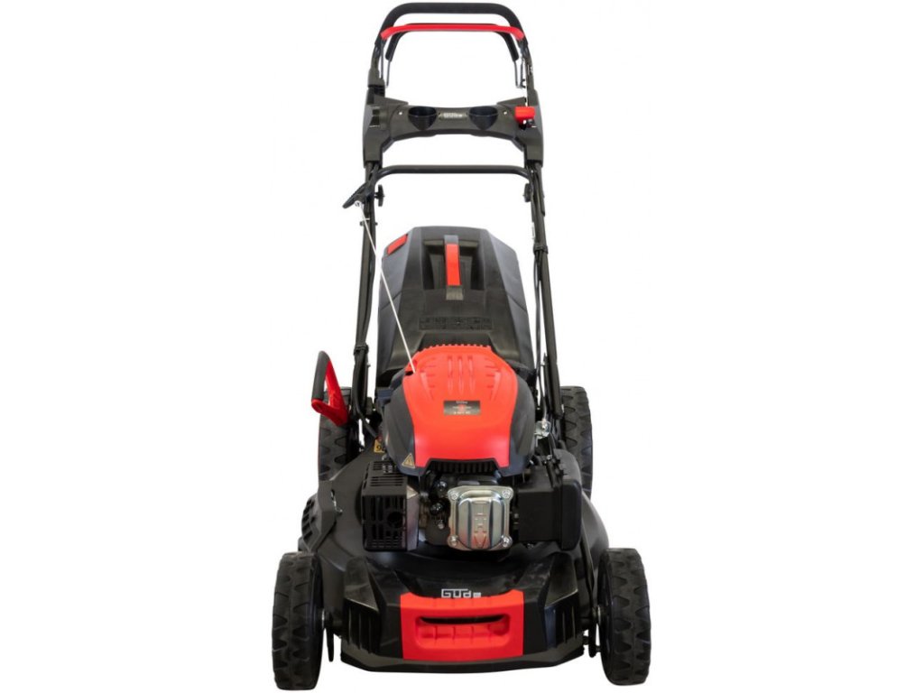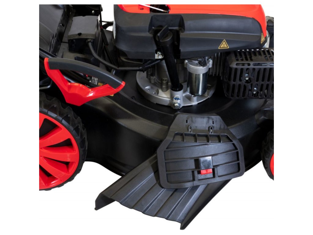 Kosačka s výkonným štvortaktným motorom, štartovanie bez námahy vďaka elektrickému štartu (Li-Ion), ergonomicky tvarovaná rukoväť s dvojpolohovým nastavením výšky. Podvozok z oceľového plechu s práškovým nástrekom. Šesťpolohové centrálne nastavenie výšky kosenia. Zberný vak na trávu s objemom 65 l s ukazovateľom stavu naplnenia. Sýtič. Pohon zadných kolies na guľôčkových ložiskách prostredníctvom plynule prepínateľného prevodového stupňa, bočné vyhadzovanie, prípojka na čistenie, mulčovací klin. Panel na vodiacom držadle s držiakom na nápoje. Na kosenie trávnika s plochou do 2000 m2.