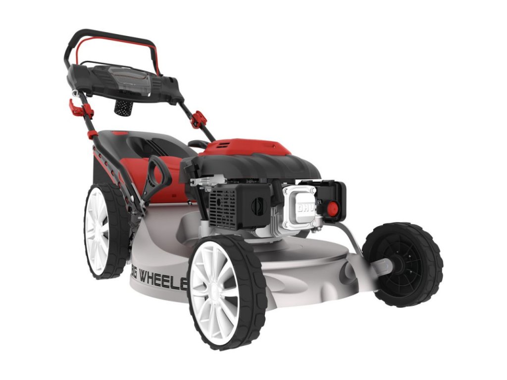 Benzínová kosačka na kosenie trávnikov s plochou do 2200 m2. 4-taktný motor Power-Engine, hliníkový podvozok, ergonomicky tvarovaná, výškovo nastaviteľná vodiaca rukoväť. 6-stupňové nastavenie výšky kosenia, 65 -litrový zberný vak s ukazovateľom stavu naplnenia. Kolesá uložené na gulôčkových ložiskách pre ľahký chod po nerovných plochách. Palivové čerpadlo Primer, mulčovací klin, panel na riadidlách s držiakom pohárov a odkladacím priestorom. Pohon zadných kolies s prevodom pre ľahký chod.