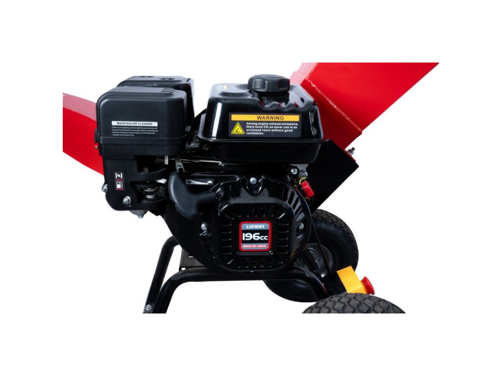 Drvič záhradného odpadu so 4-taktným motorom Power Engine. Priamy pohon, núdzový vypínač, zapínač/vypínač, otvor na vyhadzovanie, veľké kolesá so vzduchovými pneumatikami. Ochrana proti nízkej hladine oleja. Ochrana proti vyletovaniu triesok pri vkladaní konárov. Vhodný na drvenie konárov s maximálnym priemerom 50 mm (čerstvo zoťaté konáre) a s priemerom 30 mm (suché konáre).