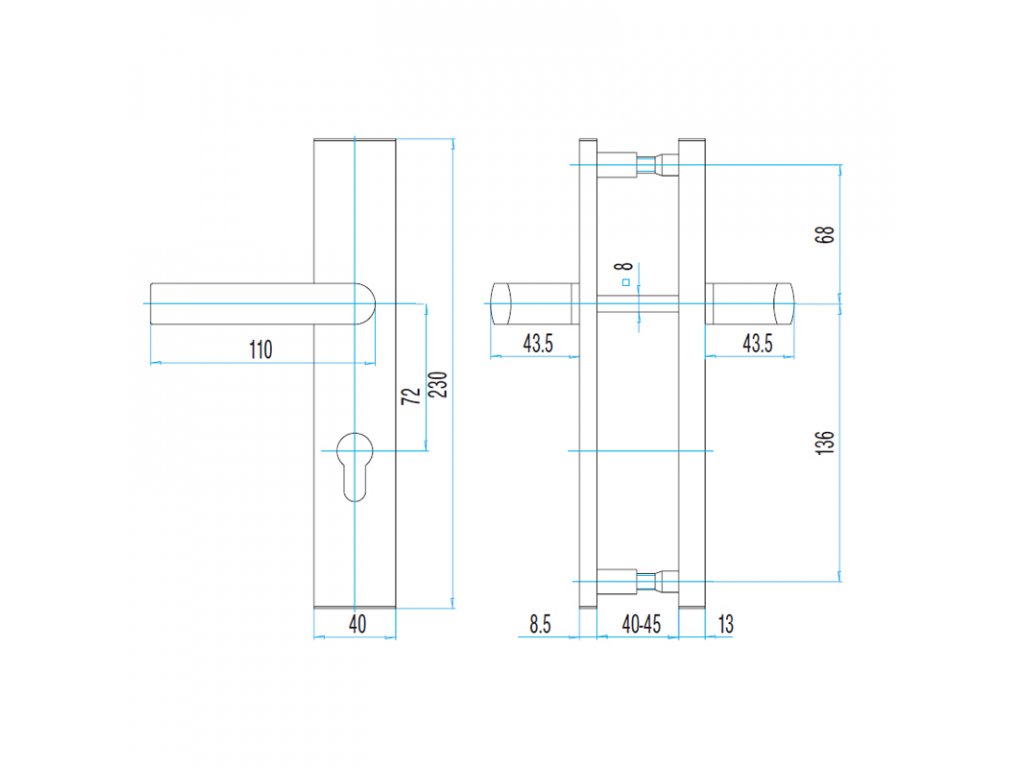 • rozstup osi kľučky a cylindrickej vložky je: FAB S1/72 – 72 mm