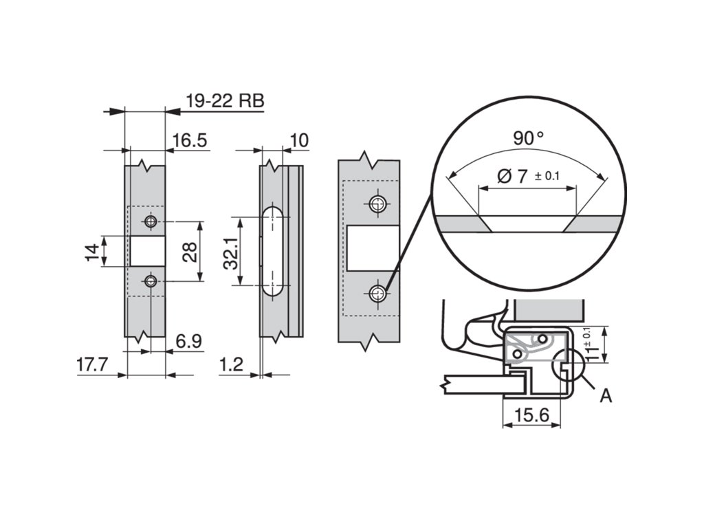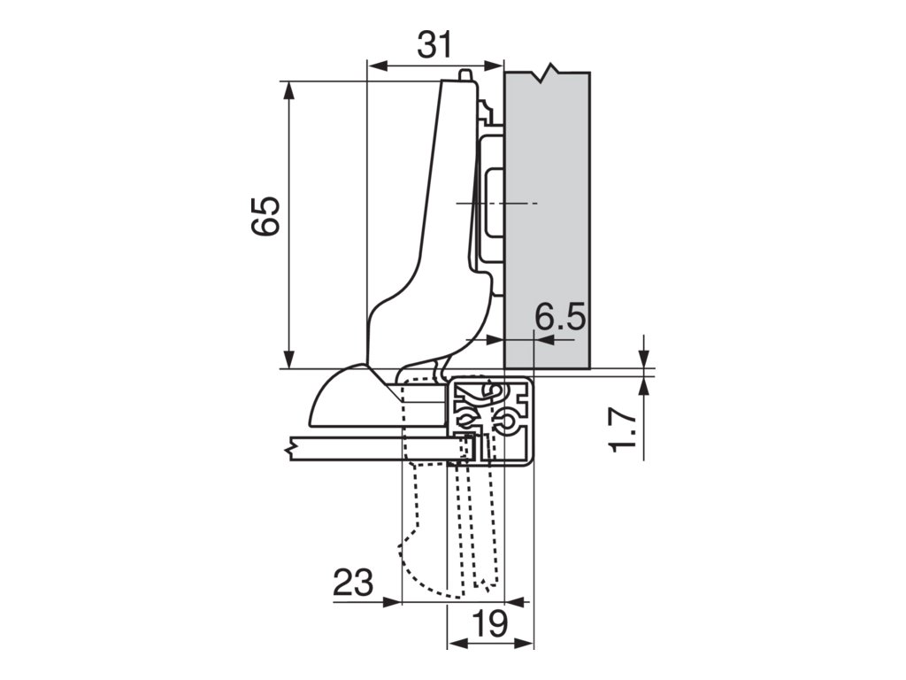 BLUM 71T970A Záves CLIP pre ALU dvierka, vložený 95°