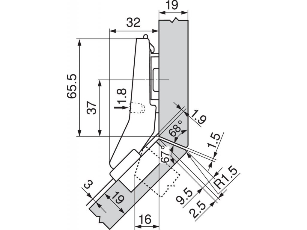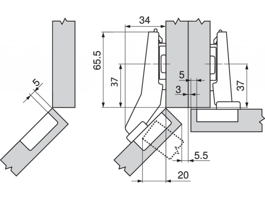 BLUM 79A9658T Polonaložený záves CLIP top 45° TipOn