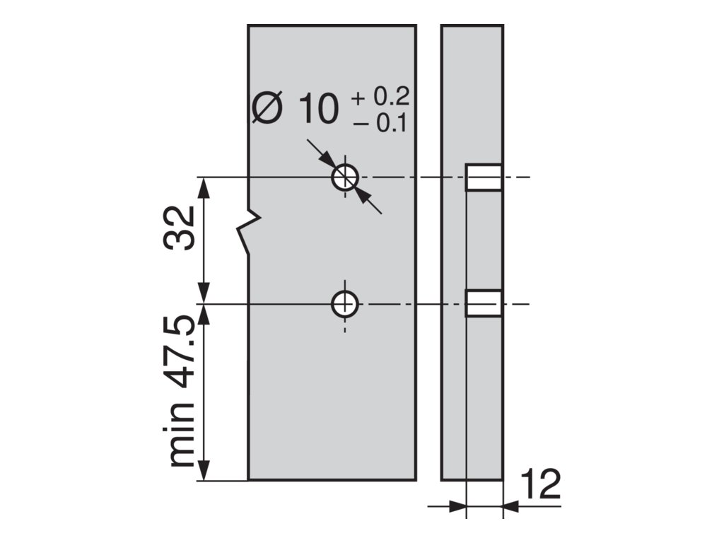 > montážne miery pre boky (vnútorná stena korp. k vonkajšej hrane dna): 37,5 mm