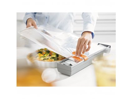 - Voliteľne možno použiť rezačku na fólie a držiak na nože