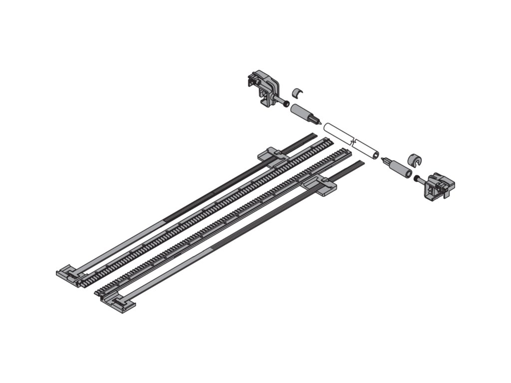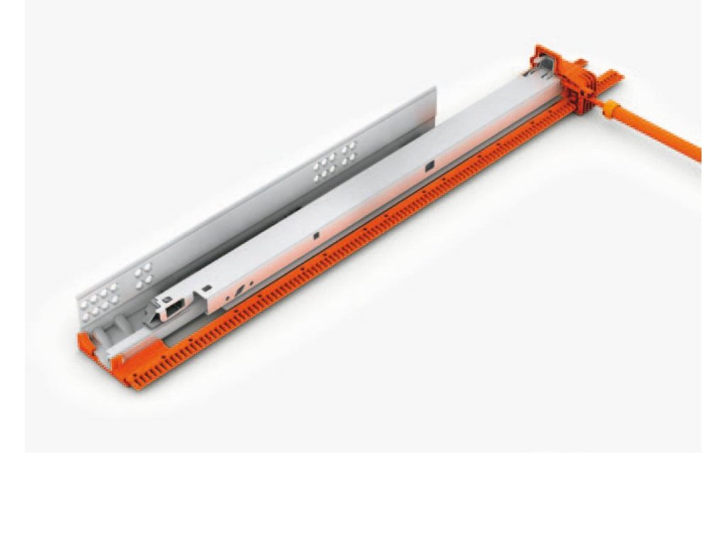 Pre drevené zásuvky s hrúbkou materiálu 11-16 mm. Na skrátenie, pre šírku korpusu 1400 mm. Nie je kompatibilný s TIP-ON.