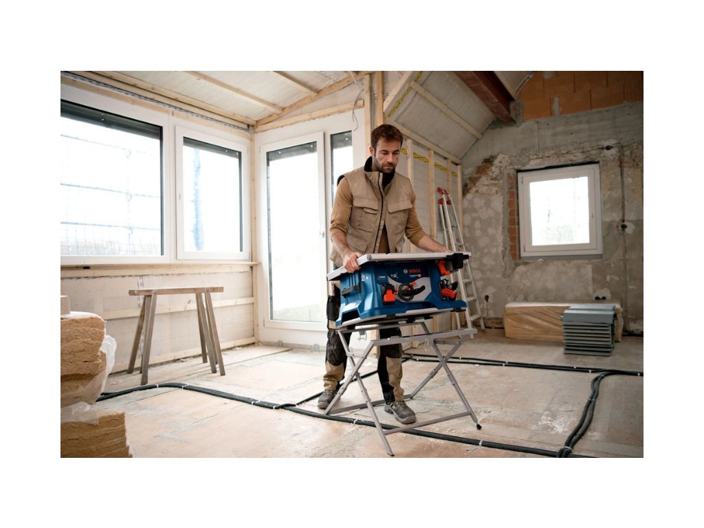 Kompaktná stolná píla Bosch GTS 18V-216 Professional BITURBO s hĺbkou rezu 70 mm kombinuje vysoký výkon a plnú mobilitu. Bezuhlíkový motor poskytuje rovnaký výkon ako elektrická stolná píla. Vďaka optimalizovanej konštrukcii a hĺbke rezu 70 mm, ako aj deleniu 635 mm pokrýva vysoká rezná kapacita tejto píly všetky hlavné oblasti použitia. Jednoduché a bezpečné prenášanie je zaručené vďaka ľahkej konštrukcii a ergonomickým rukovätiam, ako aj ochrannému úložnému priestoru v náradí na uloženie líšt a rezných kotúčov. Táto píla je ideálna na rezanie dreva, laminovaných panelov a hliníka. Možno ju upevniť na stojany Bosch GTA 560, ako aj GTA 60 W. Táto stolná píla poskytuje maximálny výkon vďaka technológii ProCORE18V, je však kompatibilná aj so všetkými ostatnými akumulátormi Bosch triedy 18 V. GTS 18V-216 Professional má štedrý priemer rezného kotúča 216 mm, hmotnosť s akumulátorom 21,6 kg a je vybavená funkciou plynulého štartu Soft Start, ako aj ochranou proti opätovnému spusteniu.