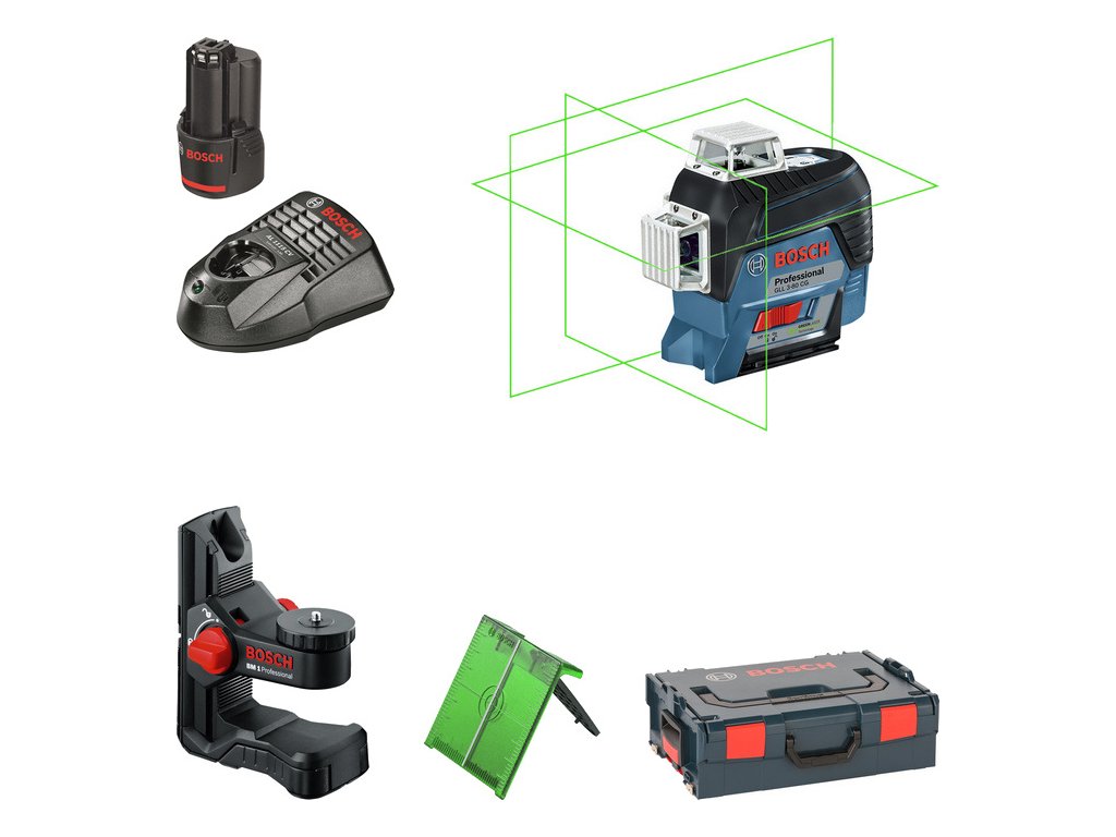 Bosch Líniový laser GLL 3-80 CG zelený + BM 1 + akumulátor, L-Boxx - 0601063T00