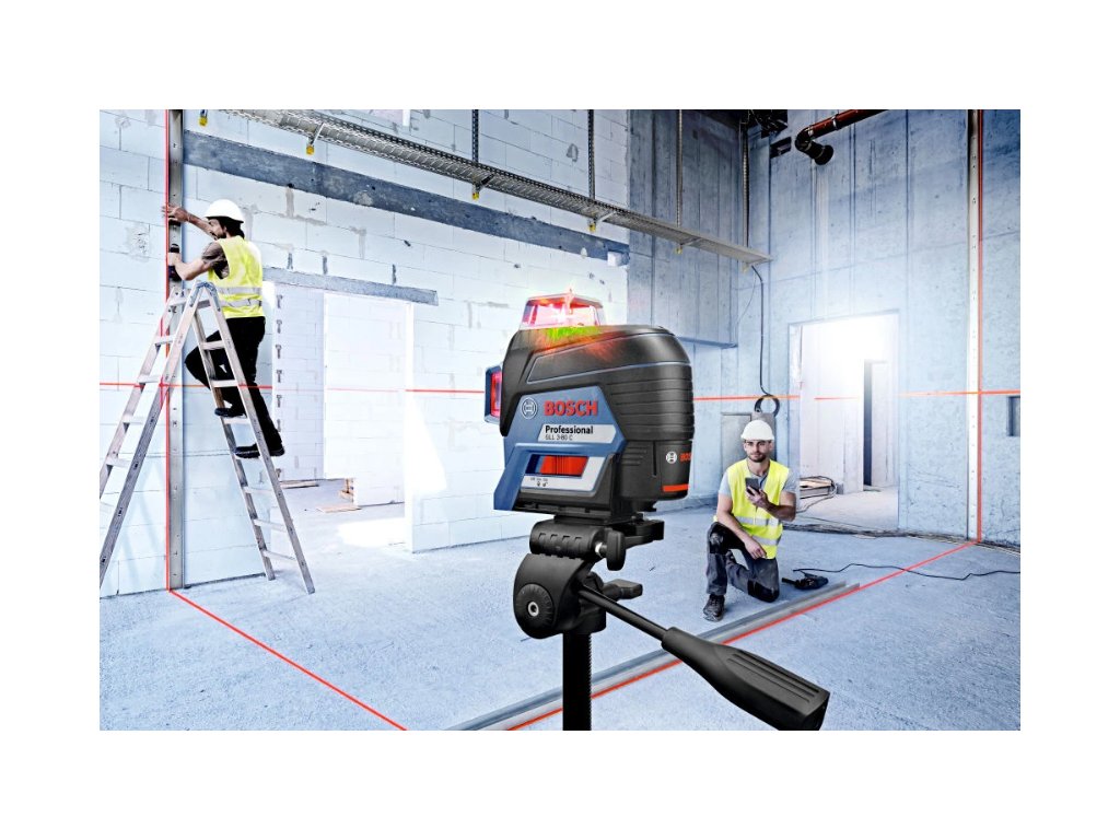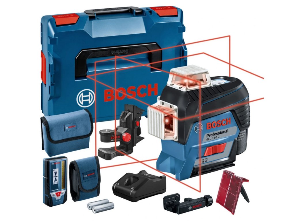 Líniový laser Bosch GLL 3-80 C Professional sa jednoducho pripája a premieta 3 línie s rozsahom 360° poskytujúce vynikajúcu viditeľnosť. Inovačné monitorovanie CAL Guard a aplikácia pre inteligentný telefón s rozhraním Bluetooth® umožňuje vzdialené ovládanie, ako aj bezkontaktné nastavenie a vysokú presnosť. Vysokovýkonné diódy zaručujú vysokú jasnosť, tri línie s rozsahom 360° umožňujú súčasné horizontálne a vertikálne vyrovnanie a mimoriadne efektívnu prácu. Tento líniový laser je určený na realizáciu podláh, montáž okien, montáž políc, kladenie odpadových potrubí, montáž konštrukcií suchej výstavby a kladenie dlažieb a obkladov. Vďaka duálnemu systému napájania je možné používať GLL 3-80 C Professional s akumulátorom 12 V Li-ion alebo bežnými alkalickými batériami. Prístroj sa ustáli na nerovných povrchoch ±4° za menej než 4 sekundy s excelentnou presnosťou ±0,2 mm/m*/** a poskytuje pracovný dosah 120 m pri použití voliteľného prijímača LR 6 alebo LR 7 Professional. Tento líniový laser je kompaktný, ľahko použiteľný a extrémne robustný.