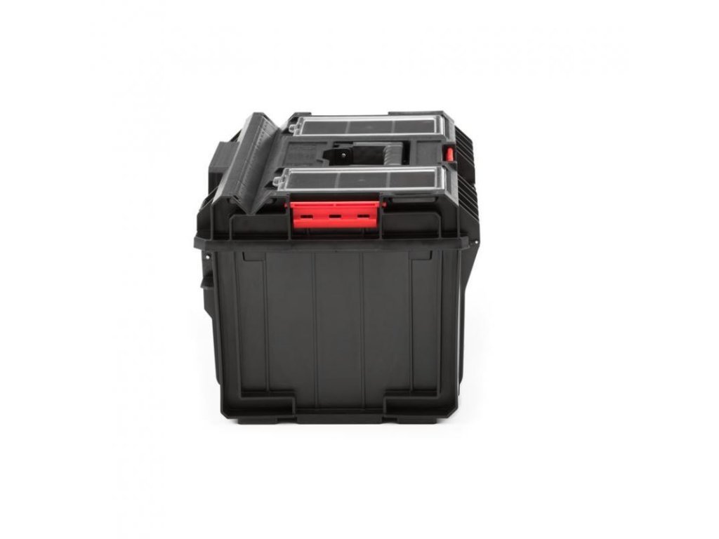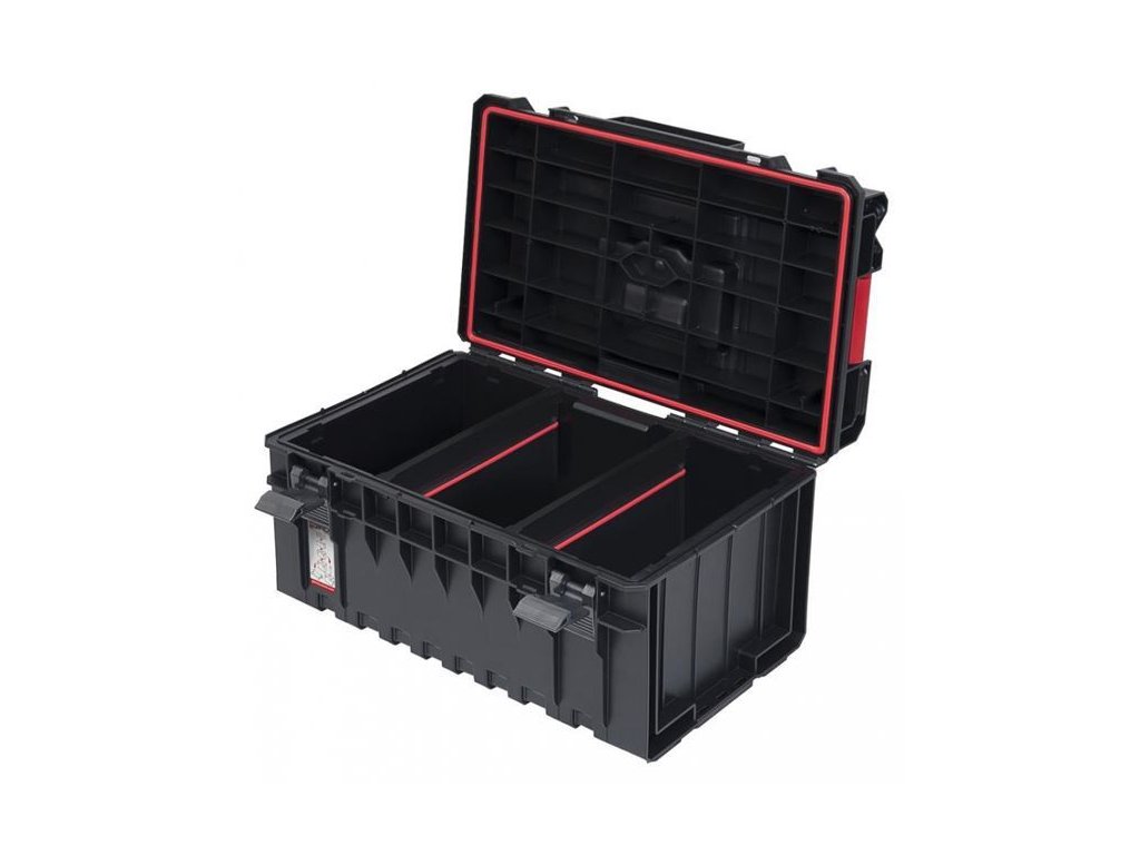 ONE 350 je veľký box na náradie s objemom 38 l. Je schopný poňať veľké množstvo náradia. Každá skrinka na náradie je vybavená flexibilným tesnením, ktoré poskytuje úplnú ochranu proti prachu a vode. Taktiež je vybavená dvomi nastaviteľnými priehradkami - jedna s elastickými popruhmi a druhá s priehradkou Multi, čo uľahčuje udržiavanie poriadku vo vnútri skrinky na náradie vďaka rôznym držiakom na ručné náradie. Odnímateľnú multi prepážku možno použiť ako samostatný nosič náradia. Vystužené veko a telo zaisťuje vysokú nosnosť (50 kg) a odolá tlaku až 120 kg, čo vám dáva možnosť vytvoriť si pohodlnú pracovnú plošinu.