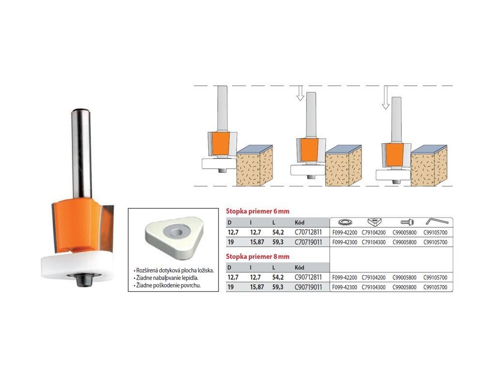 3v1 ... Nová orezávacia fréza s „Delrin“ trojuholníkovým ložiskom je najlepším riešením pre prácu s orezávaním lamina. Rieši tri najbežnejšie problémy: 1.) Nabaľovanie lepidla na ložiská, kde „Delrin“ ložiská sú z materiálu so zníženou priľnavosťou k lepidlu. 2.) Rozšírená dotyková plocha „Delrin“ ložiska perfektne sedí pri orezávacích operáciách na materiáli. 3.) Šikmé zuby frézy redukujú odvod triesok z miesta rezu.