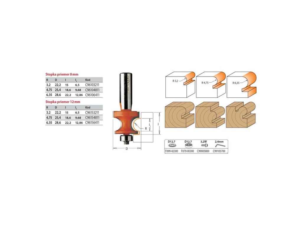 Použitie: Pre výrobu tradičných okrajov a hrán alebo pre obnovovanie starých hrán. S tvrdokovovými reznými hranami a nepriľnavým teflónovým poťahom dávajú tieto frézy CMT vynikajúce výsledky na rohových spojoch. Pre vytvorenie kompletného rohového okraja použite frézu z oboch strán viď. obrázok.
