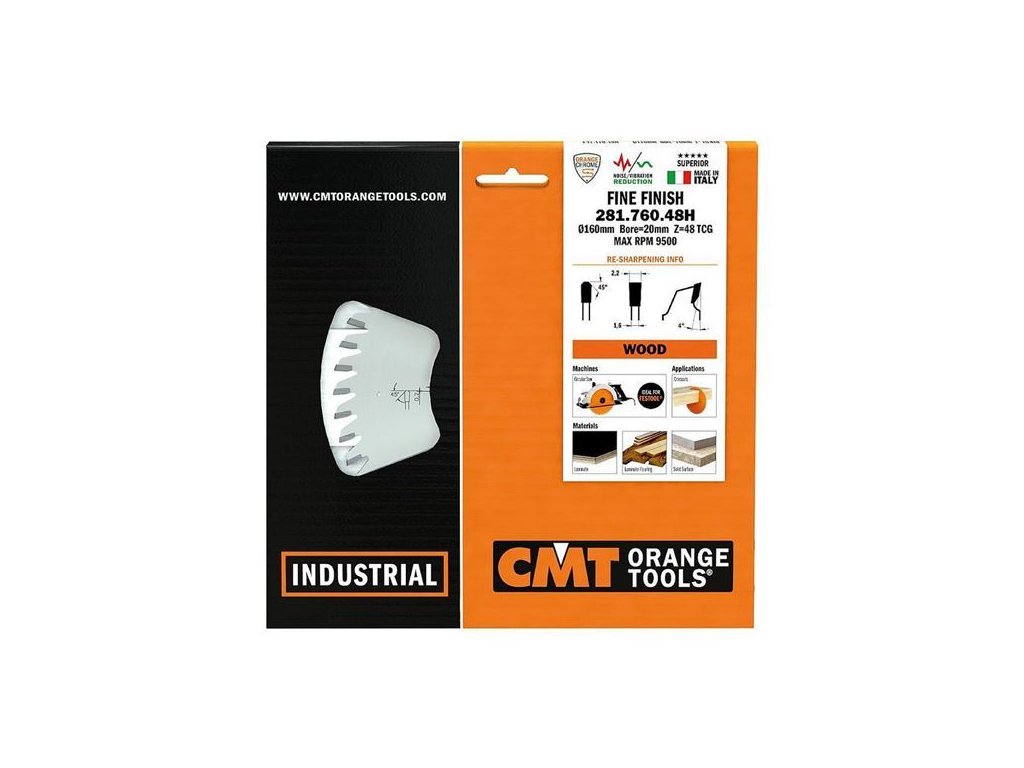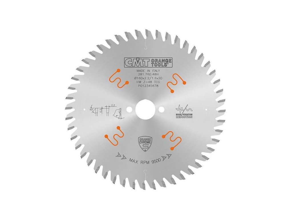 CMT CHROME Pílový kotúč na lamino a kompozity - D160x2,2 d20 Z48 HW C28176048H