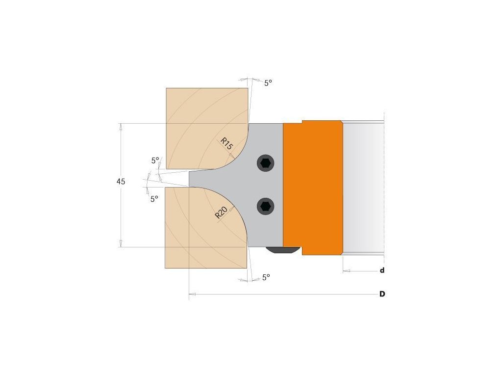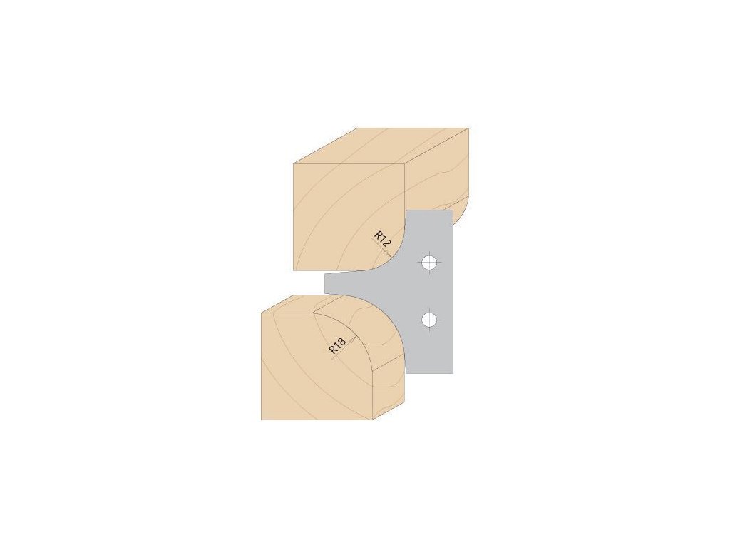 Táto multiradiusová frézovacia hlava je určená pre rádiusové zaoblenie hrán. Žiletky sú vybrúsené z dvoch strán s väčším a menším rádiusom. Štandardne je frézovacia hlava dodávaná s HM žiletkami s rádiusom 15 a 20 mm. Je možné priobjednať ďalšiu sadu žiletiek s rádiusmi 12 a 18 mm. Určené pre použitie so spodnou frézkou. Výborne sa hodí pre všetky materiály, najmä na tvrdé drevo a doskové materiály.