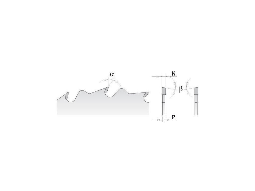 Pílový kotúč pre pozdĺžne rezy. Kotúč so striedavo šikmými zubami a špeciálnym oceľovým telom domokrého a suchého dreva. Ideálny pre formátovacie píly, kotúčové píly, alebo rozmietacie píly. Špeciálne telo eliminuje vibrácie a garantuje perfektný rez. Vysoká životnosť tvrdokovových zubov.