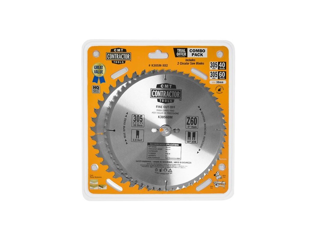 CMT Contractor sada pílových kotúčov na drevo - D305x2,8 d30 Z40+Z60 HW, 2ks C-K305M-X02