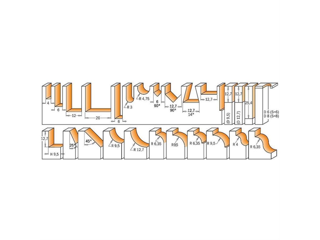 Ekonomicky výhodné zostavy fréz obsahujú široký výber 26 kusov alebo 15 kusov najpoužívanejších CMT fréz. Za tieto sady fréz zaplatíte oveľa menej než pri zakúpení jednotlivých fréz. Navyše je v cene plastové puzdro pre bezpečné skladovanie. Ideálne pre skúsených remeselníkov a profesionálov.