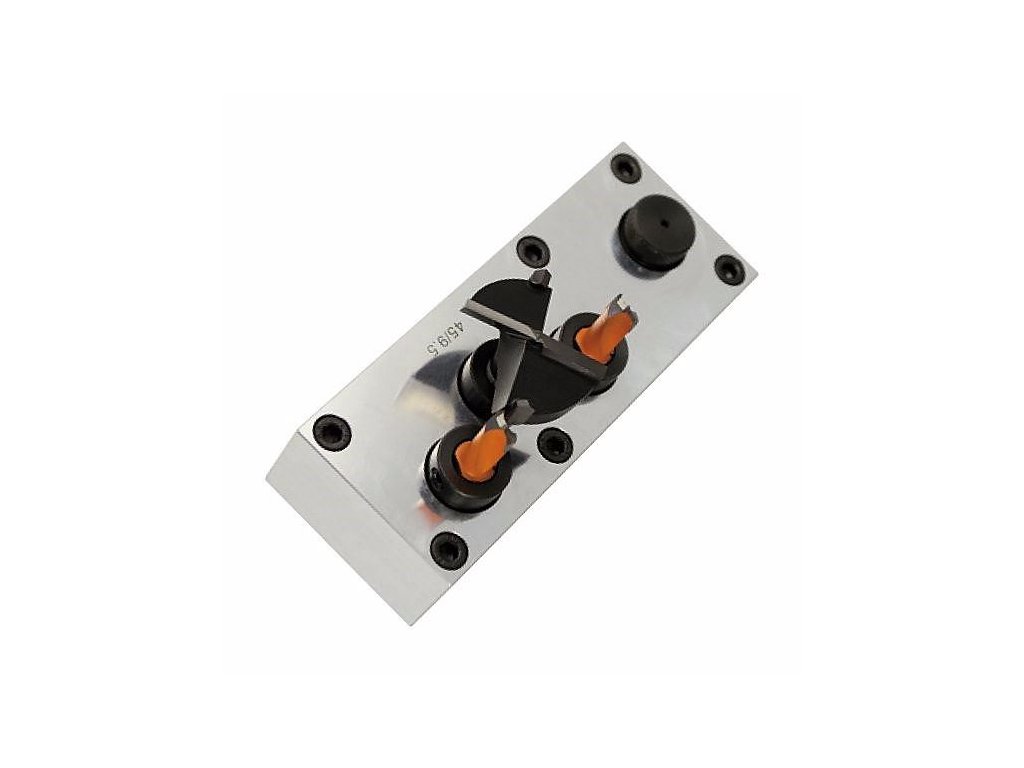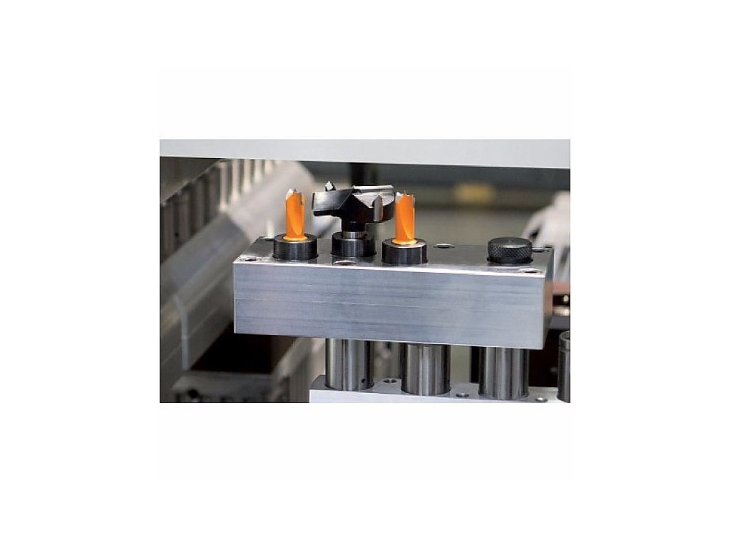 Nová vŕtacia hlava s tromi vretenami pre upnutie sukovníku a dvoch kolíkovacích vrtákov pre závesy Blum, Salice, Häfele a Hettich s rozstupom 45/9,5 mm. Určené pre upnutie do kolíkovačiek a priebežných kolíkovacích strojov.