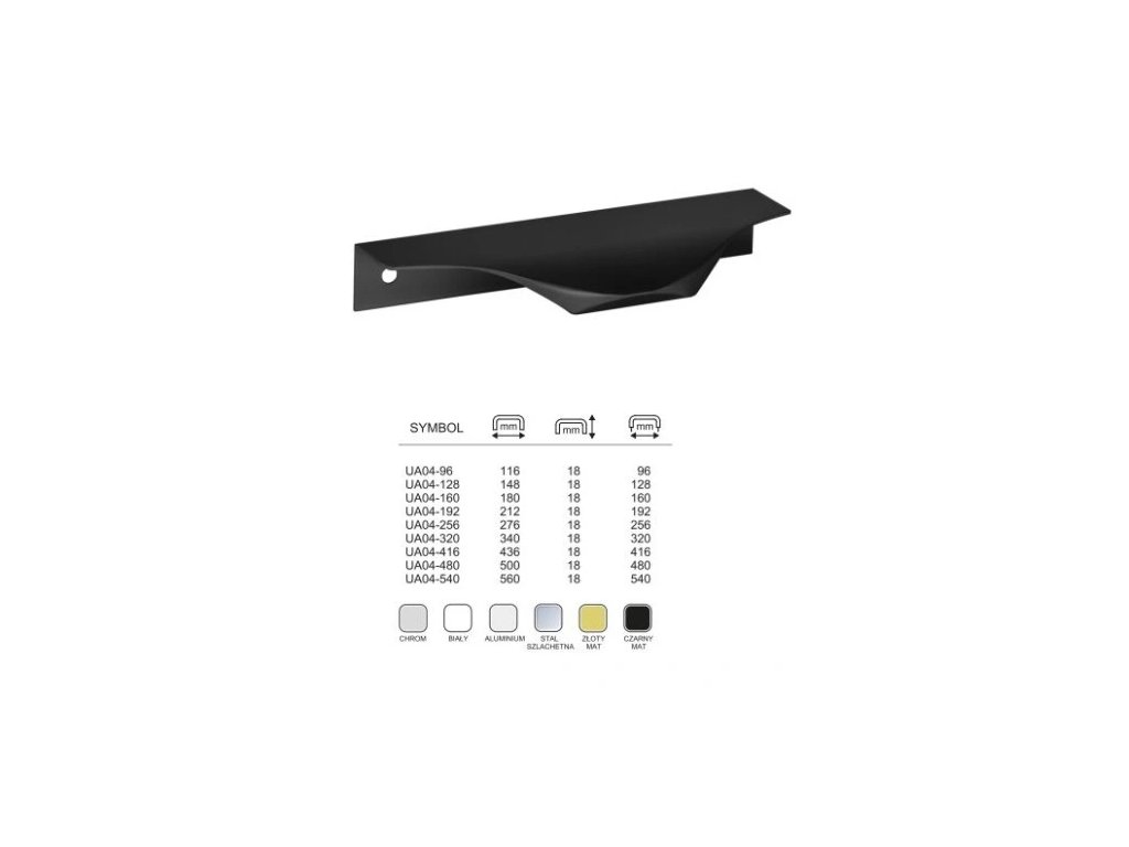 Úchytku je možné objednať v rôznych roztečiach. Prvý rozmer je rozteč, druhý rozmer je celková dĺžka úchytky.