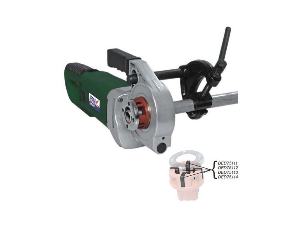 Elektrický závitorez model DED7511 je zariadenie, pomocou ktorého môžete rýchlo a efektívne vyrábaťvonkajšie závity na oceľových rúrach. Súprava obsahuje sadu štyroch závitníkov s čepeľami na výrobu závitov s veľkosťou 1 /2", 3/4", 1" a 1 1/4".