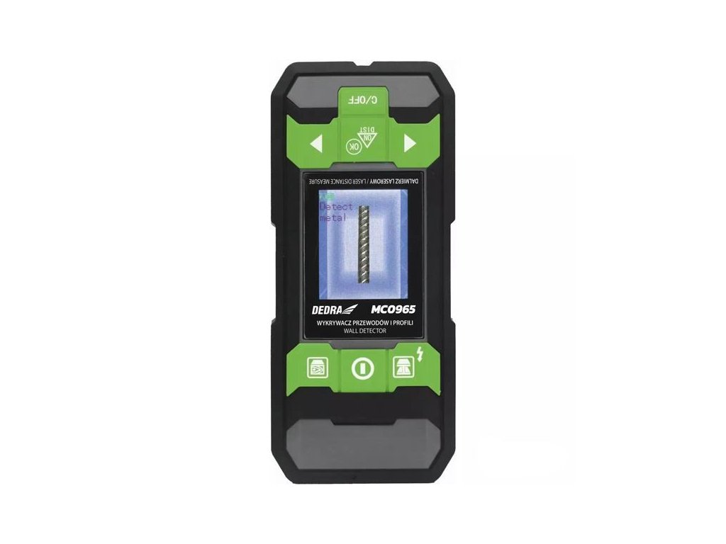 Detektor vodičov a káblov DEDRA MC0965 umožňuje detekciu kovových súčastí a vodičov, elektrických káblov bez striedavého napätia a pod striedavým napätím a dreva, ako aj ďalších predmetov, ako je železo, betón, sklo, hliník atď. To pomáha doplniť technickú dokumentáciu stavieb. Detektor je navyše vybavený funkciou diaľkomeru s pracovným rozsahom 0,05-40 m, čo je veľká výhoda, pretože namiesto dvoch zariadení máme jedno.