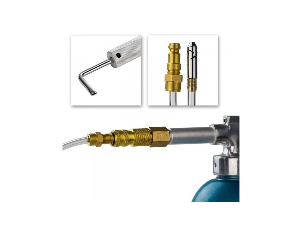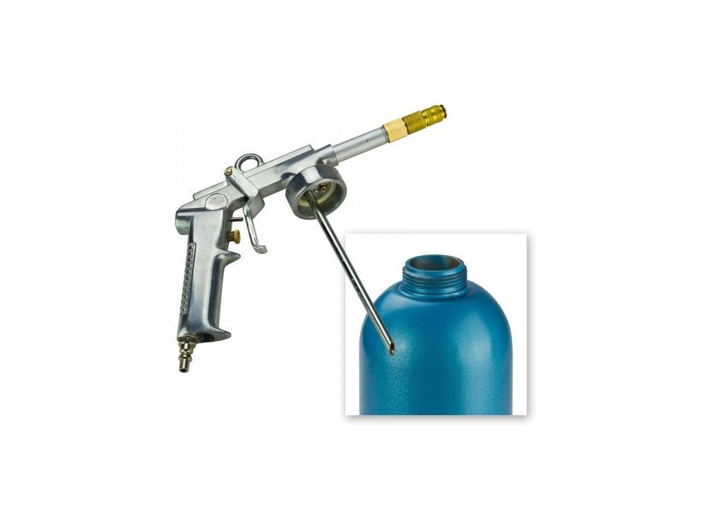 Pištoľ z hliníkového odliatku na striekanie dutín prahov, stĺpikov alebo medzipriestorov konzervačnými prostriedkami pod tlakom 4 - 6 barov. Závesné očko, ohnutá dýza, dýza pre kruhový nástrek, rýchlospojka, vsuvka na pripojenie ku kompresoru.