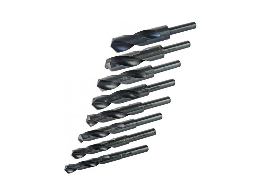 8-dielna sada HSS špirálových vrtákov s 13 mm upínaním. Nitračne tvrdené, vhodné na vŕtanie do legovanej a nelegovanej ocele, neželezných kovov, šedej liatiny, tvrdých plastov.