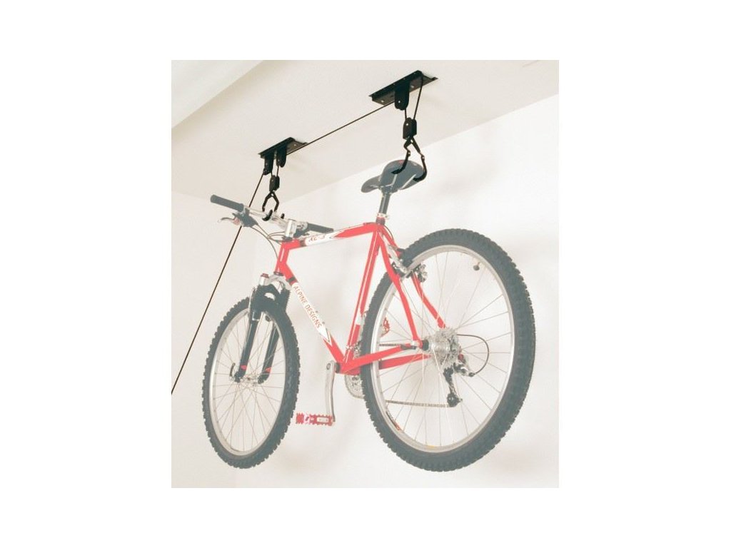 Univerzálny výťah sa hodí takmer na všetky typy bicyklov. Vrátane pripevňovacích skrutiek. Ušetrí miesto v pivnici, v garáži. Umožňuje vytiahnuť bicykel s minimálnym vynaložením sily až po strop. Rýchle a pohodlné spustenie dolu. Bezpečná manipulácia blokovaním klesania, fixovaním lana, vodiacimi kladkami, montáž na strop. Ochranou proti poškriabaniu sú pogumované držiaky.