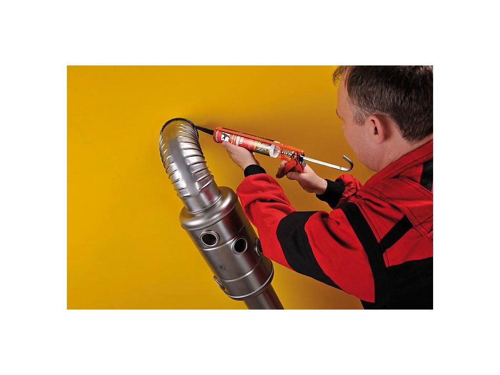 Na tmelenie prasklín a škár šamotových výplní kachlí a krbov, kotlov, pecí, komínových prírub, dymovodom, škár otvorených ohnísk a pod. Montáže a lepenie komínových systémov Schiedel, Prespor a iných. Opravy prasklín, trhlín a úlomkov šamotových výplní. Úplná doba vytvrdnutia cca 24 hodín v závislosti na teplote a hrúbke škáry. Po vytvrdnutí tvrdý.