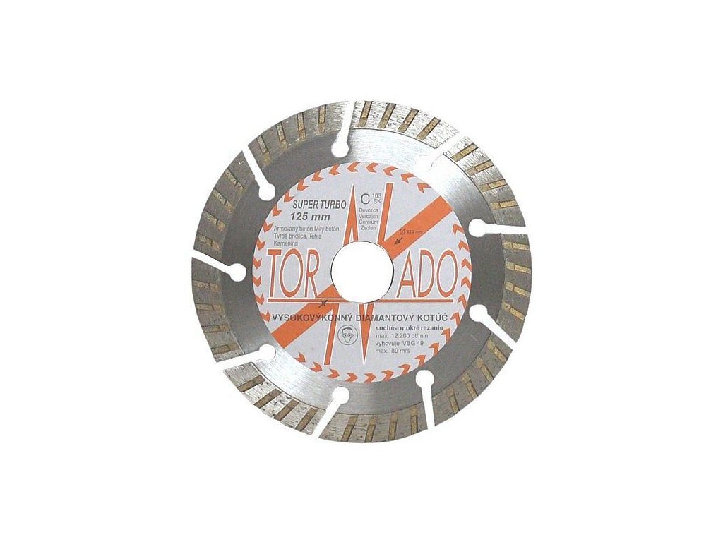 Kotúče diamantové TORNADO SUPER TURBO sú osadené v segmentoch s diamantami najvyššej kategórie a s najvyšším objemom hustoty diamantu na cm2. Sú určené pre profesionálnych remeselníkov práve pre ich vysokú kvalitu, dlhú životnosť. Tornado Super Turbo je určený na rezanie stavebných materiálov, ako je tehla, betón, šamot, bridlica a armovaný betón. Tento kotúč je už 20 rokov na európskom trhu jednotkou, čo hovorí o jeho vysokej kvalite a zároveň aj spokojnosti zákazníka. Kotúč je určený pre suché rezanie, ale nie je vylúčené ani použitie vody, ktorá predľži jeho životnosť.