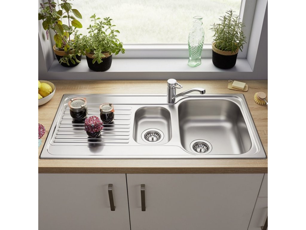 Odtoková armatúra, dve 3 ½" výpuste so sitkami, zápachový uzáver s odbočkou pre umývačku riadu