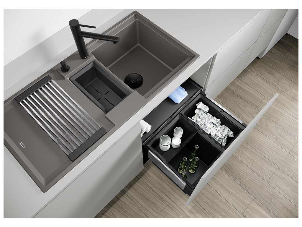 - praktická multifunkčná miska ADIRA, ktorá plní funkciu druhej vaničky, odkvapkávača a je kompatibilná s košovými systémami BLANCO SELECT II a FLEXON II
