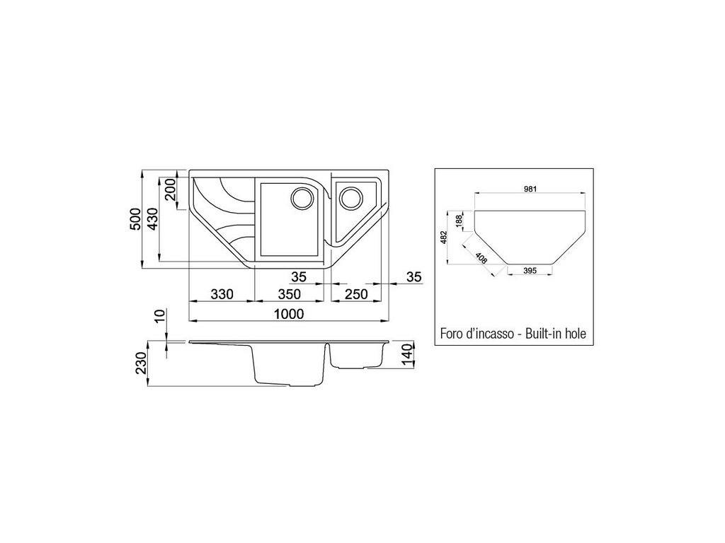 kuchynský rohový granitový drez