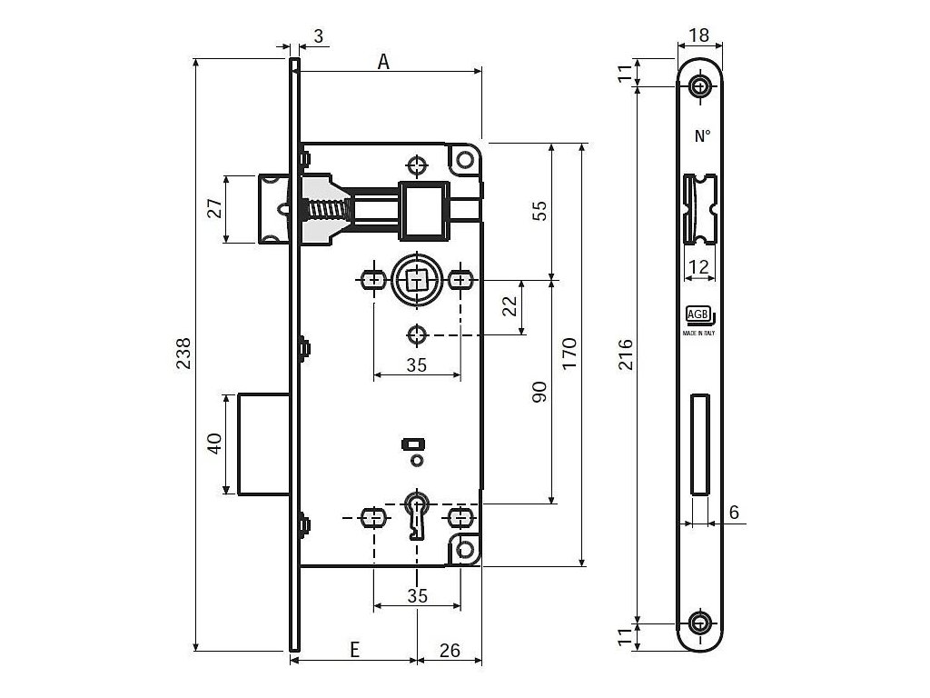 Zádlabávací dvojzápadkový zámok na kľúč. Zámok je možné prispôsobiť na pravú alebo aj ľavú stranu. V balení s kľúčom.