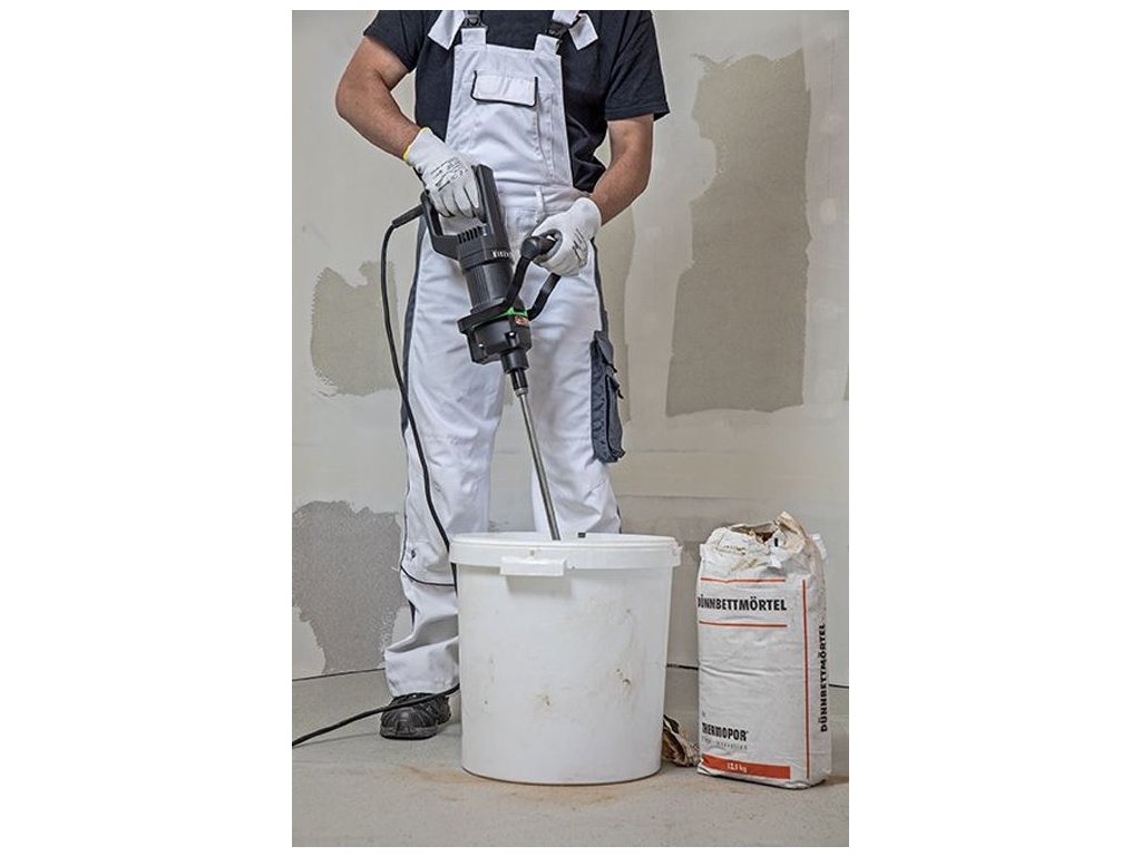 - Miešanie stavebných materiálov s nízkou a strednou viskozitou, napr. B. farby, lepidlá, tmely a vyrovnávacie hmoty, lepidlo na obkladačky, hotová malta