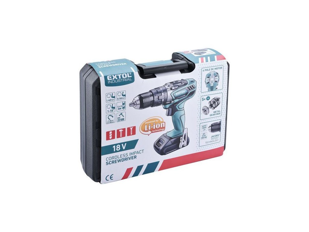 EXTOL 8791110 aku. vŕtací skrutkovač s príklepom 18V/2Ah Li-ion, 58Nm, kufor